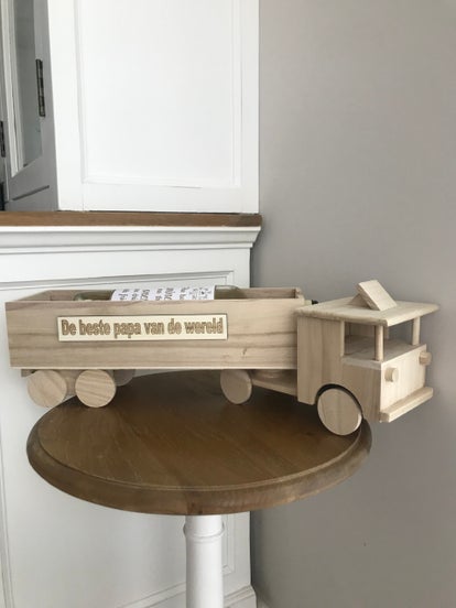 Truck met open bak voorzien voor fles wijn, maar kan ook met andere vulling naar keuze