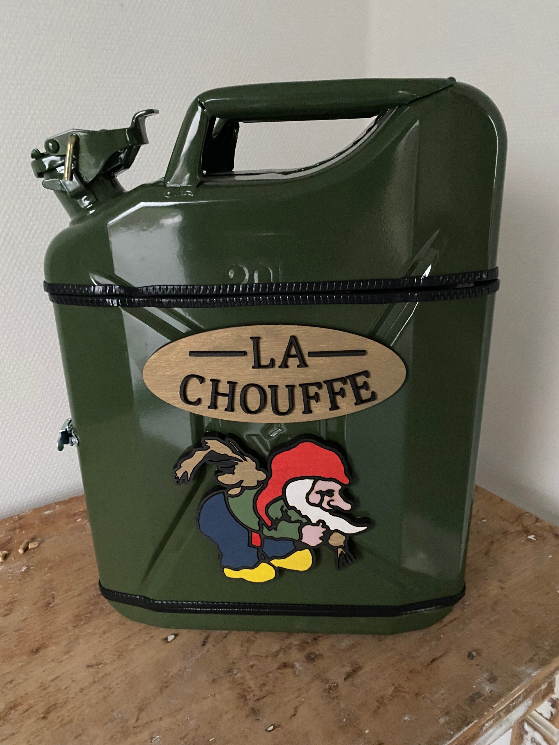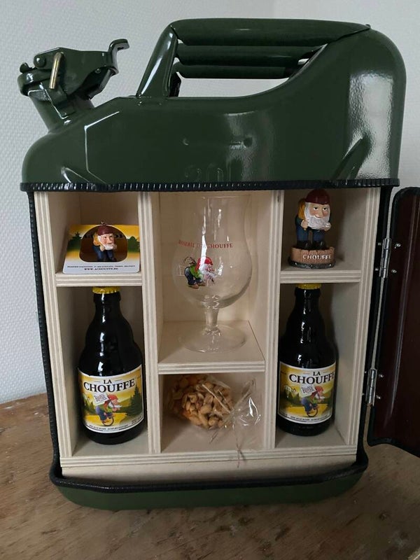 Bar gevuld met 2x flesje la chouffe, kabouter la chouffe, sleutelhanger, glas, nootjes