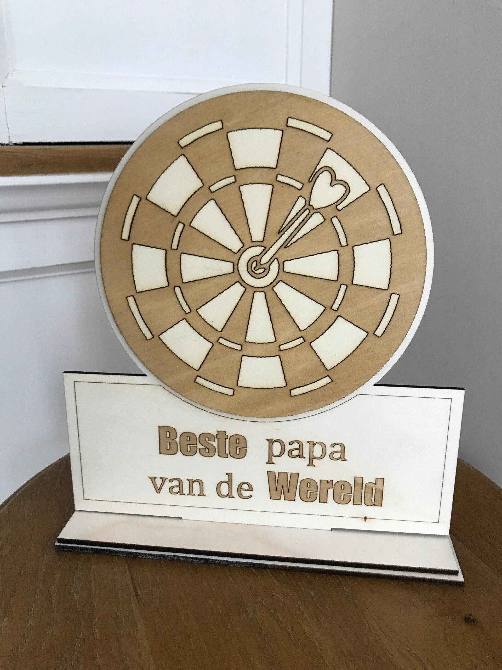 Dit dartsbord kan je bestellen met tekst naar keuze