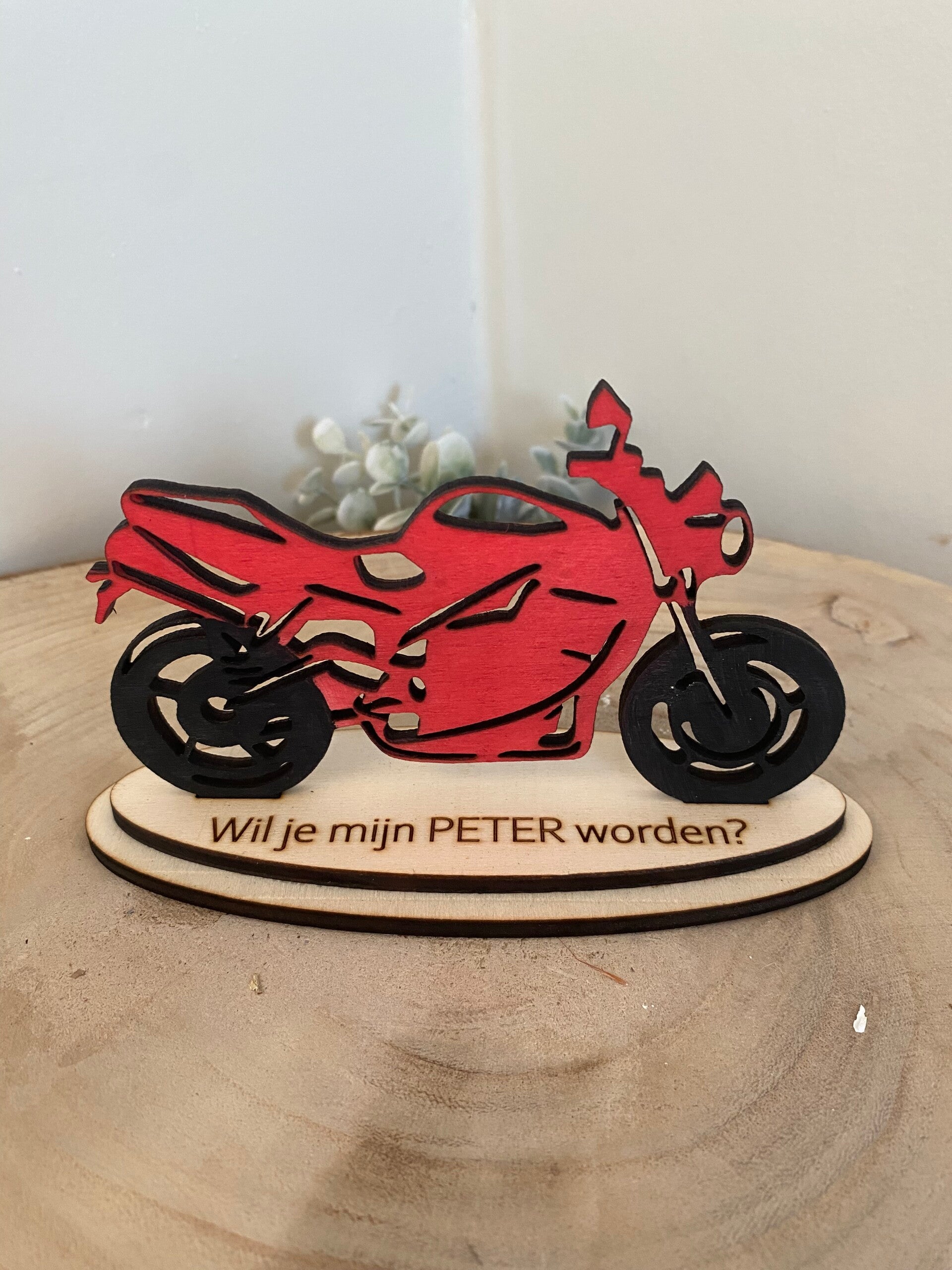 Deze mini motor kan in kleur naar wens en kan met tekst op de voet