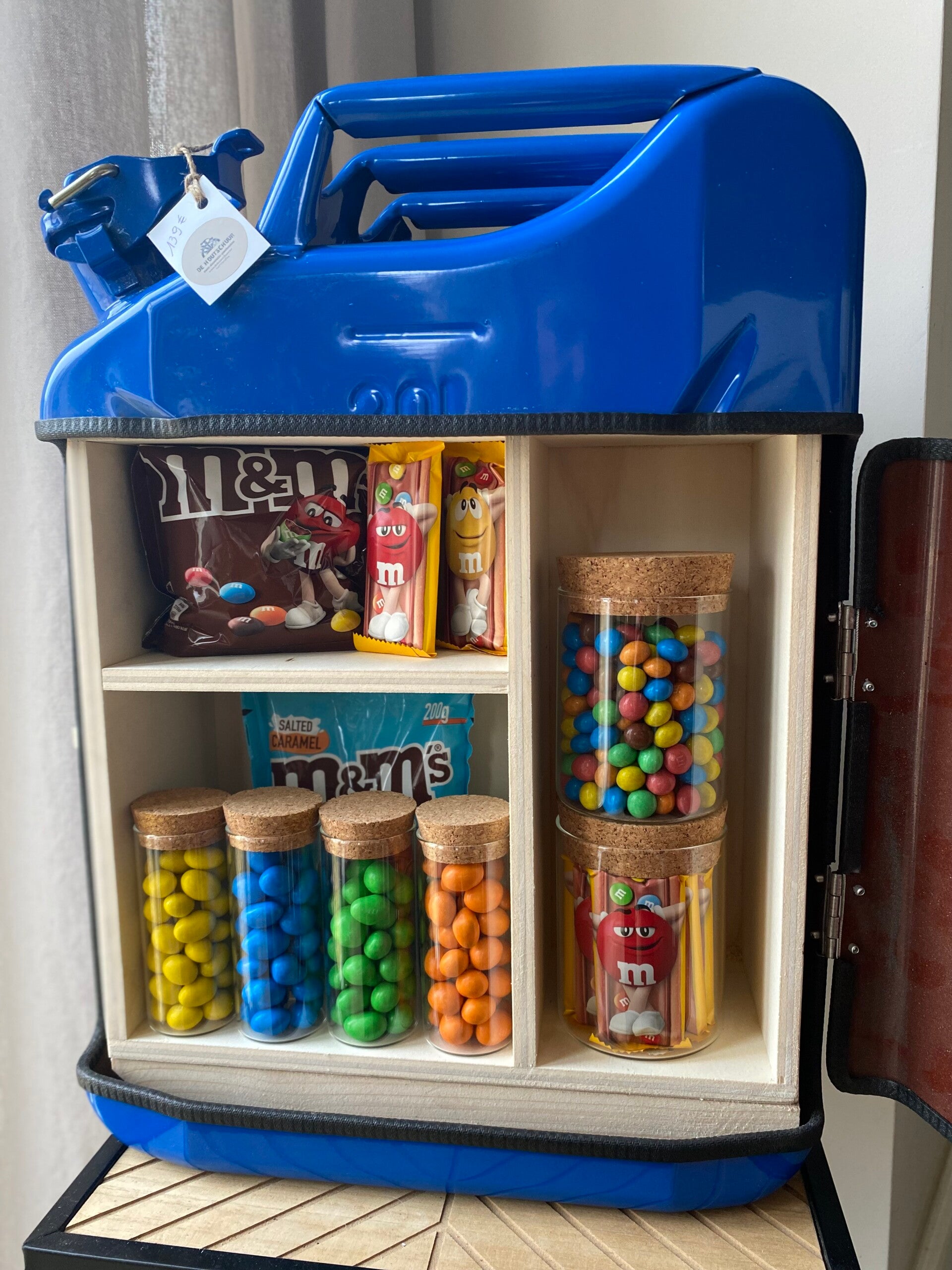 Jerrycan 20L gevuld met 1.200kg M&M's en M&M koekjes