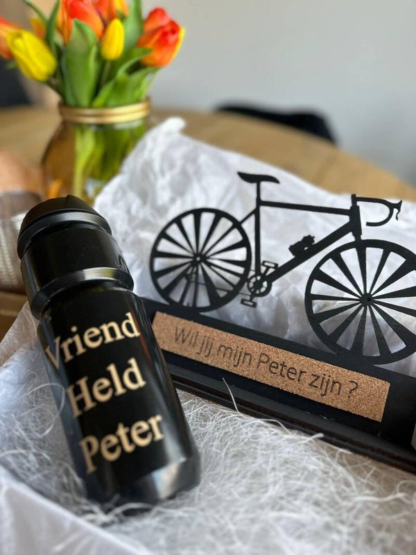 Welke tekst wil je laten laseren Bv. Papa, jij bent mijn wereldkampioen! Wil jij mijn Peter zijn? …