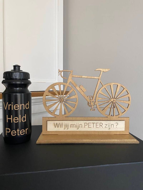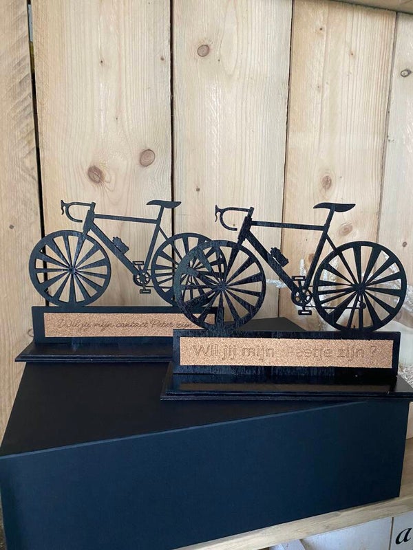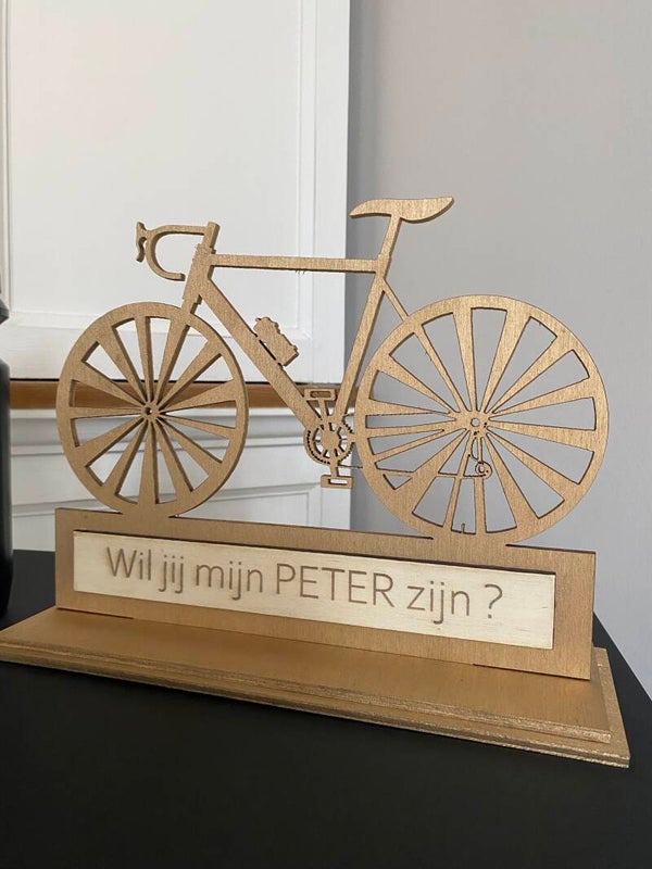 Houten fiets met tekst