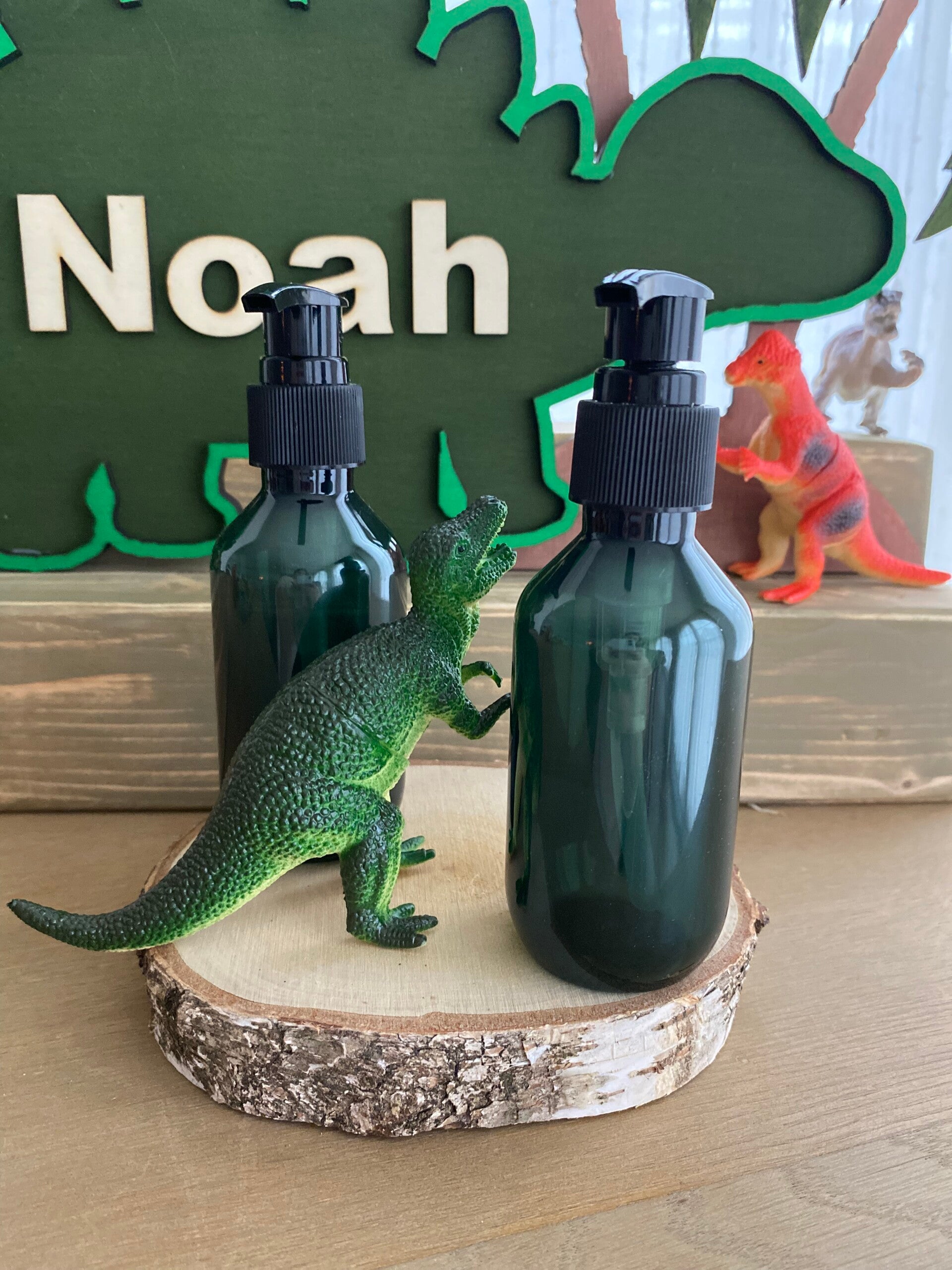 Zeeppompje gevuld met zeep en afgewerkt met houten naamlabel of naamsticker